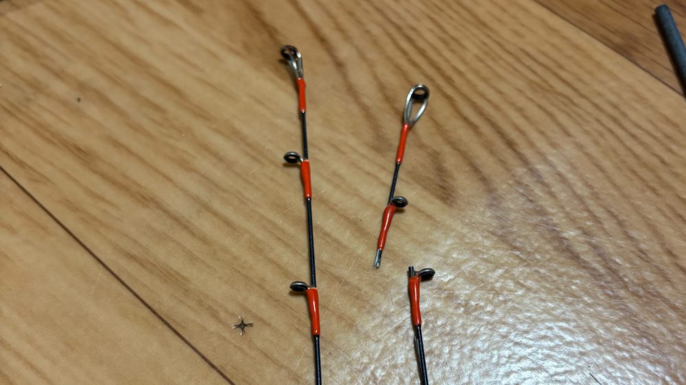 どこのメーカーも先端のガイドだけSiCリングで残りのガイドに、アルコナイトリング使用することで価格を抑えていますね!